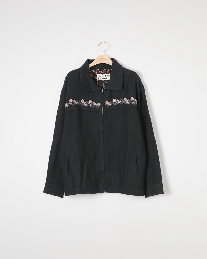 linen embroidered zip jacket