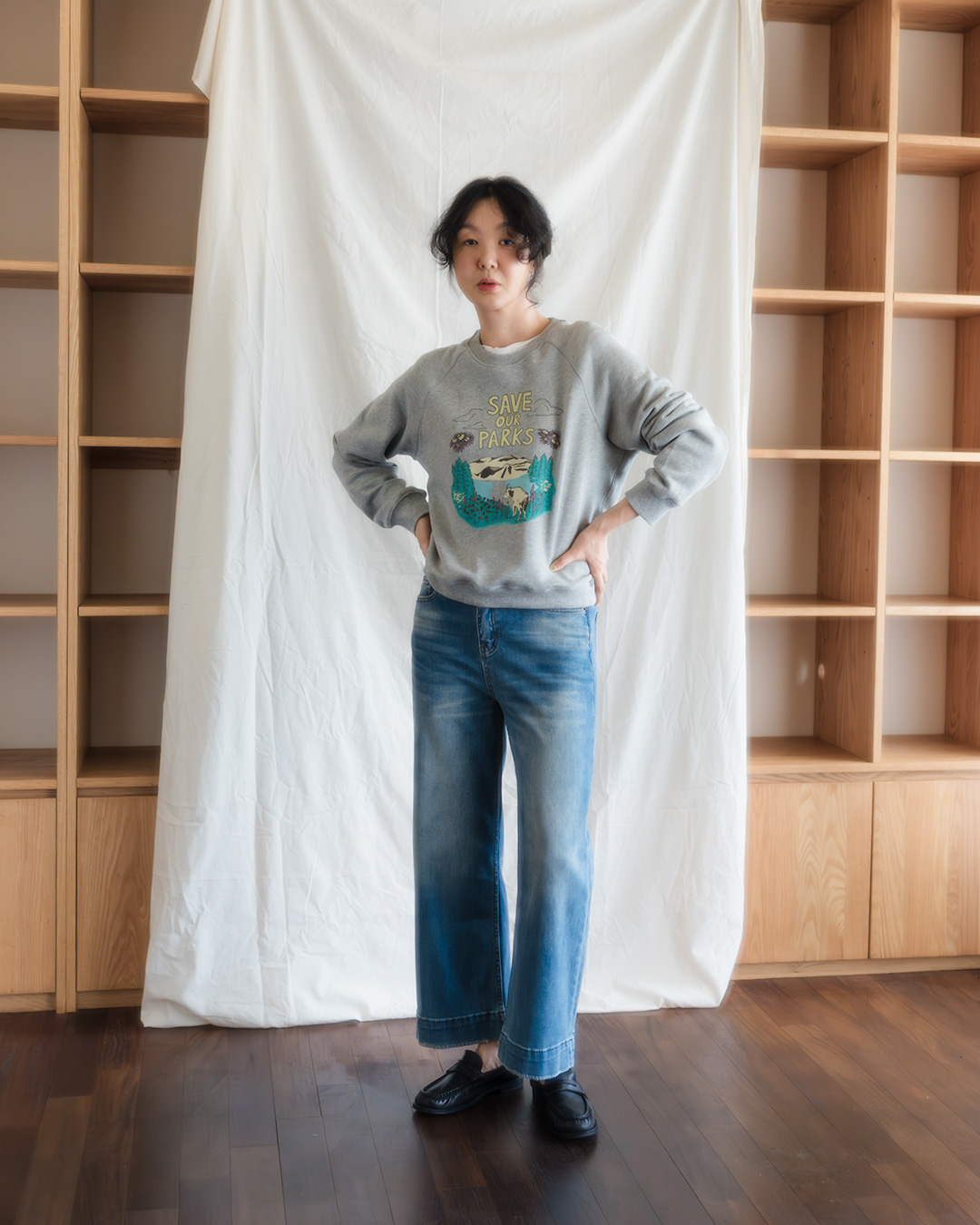 ÀÛÀº Àç¹Ì¸¦ ´õÇØÁÖ´Â ¾ÆÀÌÅÛÀÌ¿¡¿ä. Æí¾ÈÇÑ ½º¿þÆ®¼ÅÃ÷ ƯÀ¯ÀÇ ¿©À¯·Î¿î ¹«µå´Â ±×´ë·Î »ì¸®¸é¼µµ, ºóƼÁöÇÑ ¹«µåÀÇ ±×·¡ÇȰú »ê¶æÇÑ Ä÷¯ Á¶ÇÕ ´öºÐ¿¡ ÀÔ´Â ¼ø°£ Àüü ºÐÀ§±â°¡ ÈξÀ »ý±â ÀÖ¾î º¸ÀÔ´Ï´Ù. µ¥´Ô À§¿¡ ¹«½ÉÇÏ°Ô Çϳª¸¸ ÀԾ ÃæºÐÈ÷ ½ºÅ¸ÀÏÀÌ µÇ°í, ÀÚÄÏÀ̳ª ¼ÅÃ÷¿Í ·¹À̾îµåÇÏ¸é ¶Ç ´Ù¸¥ ¸Å·ÂÀ¸·Î Áñ±â±â ÁÁ¾Æ¿ä. ÈûÀ» ÁÖÁö ¾Ê¾Æµµ ÀÚ¿¬½º·´°Ô Æ÷ÀÎÆ®°¡ µÇ´Â, Çö½ÇÀûÀ¸·Î Àß ÀÔ°Ô µÉ ¸ÇÅõ¸ÇÀÔ´Ï´Ù 😊
