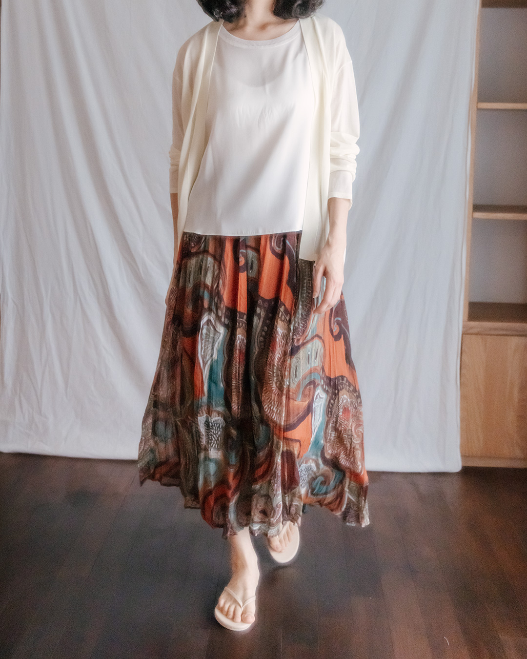 ½ÉÇÃÇÑ »óÀÇ¿¡ Çϳª¸¸ ´õÇØµµ ºÐÀ§±â°¡ ´Þ¶óÁö´Â ½ºÄ¿Æ®¿¹¿ä. °ÉÀ» ¶§¸¶´Ù ¾ã°Ô Èçµé¸®´Â °áÀÌ »ì¾Æ ÀÖ°í, Â÷ºÐÇÑ ºê¶ó¿î À§·Î ¹øÁö´Â µí ¾ñÈù û·Ï°ú Å©¸², Å×¶óÄÚŸ ÅæÀÇ ÆÐÅÏÀÌ Àº±ÙÇÏ°Ô ½Ã¼±À» ²ø¾îÁÝ´Ï´Ù. ÈûÀ» ÁÖÁö ¾Ê¾Æµµ ÃæºÐÈ÷ ¸Ú½º·¯¿î ÇÑ Á¡ÀÌ µÇ¾îÁÖ´Â ¾ÆÀÌÅÛÀ̶ó, ¿©¸§ ¿ÊÂ÷¸²ÀÌ ´ÜÁ¶·Ó°Ô ´À²¸Áú ¶§ ƯÈ÷ ¼ÕÀÌ ÀÚÁÖ °¥ °Å¿¹¿ä. °¡º±°í ½Ã¾îÇÑ Áú°¨ ´öºÐ¿¡ ¿òÁ÷Àϼö·Ï ½Ç·ç¿§ÀÌ ºÎµå·´°Ô »ì¾Æ³ª°í, ÀÜÀÜÇÏ°Ô ÀâÈù ÁÖ¸§°ú À¯¿¬ÇÑ ¹Ø´ÜÀÌ Àüü ÀλóÀ» ÇÑÃþ ¿©¸®°Ô Á¤¸®ÇØÁÝ´Ï´Ù. Á¸Àç°¨ ÀÖ´Â ÇÁ¸°Æ®ÀÌÁö¸¸ »ö°¨ÀÌ °úÇÏ°Ô Æ¢Áö ¾Ê¾Æ ¾ÆÀ̺¸¸®, º£ÀÌÁö, ºê¶ó¿î, ¸Ô»ö °è¿ÀÇ »óÀÇ¿Í ÀÚ¿¬½º·´°Ô ¾î¿ì·¯Áö°í, ½½¸®ºê¸®½º³ª ¾ãÀº °¡µð°Ç°ú ÇÔ²² ÀÔÀ¸¸é Æí¾ÈÇϸ鼵µ °¨µµ ÀÖ´Â ¿©¸§ ·èÀÌ ¿Ï¼ºµË´Ï´Ù 😊